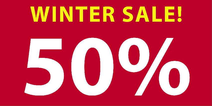 Naklejka samoprzylepna foliowa WINTER SALE! ...% (100x50 cm) - druk cyfrowy, solventowy, zadruk jednostronny kolorowy.