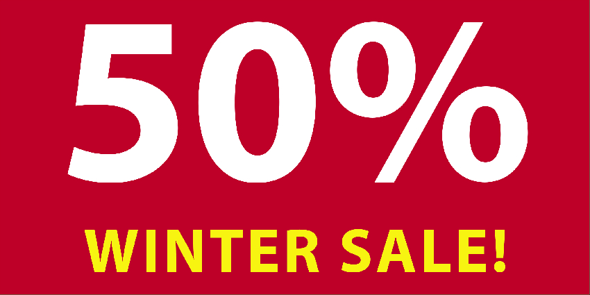 Naklejka samoprzylepna foliowa WINTER SALE! ...% (100x50 cm) - druk cyfrowy, solventowy, zadruk jednostronny kolorowy.