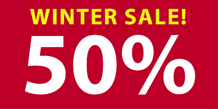 Naklejka samoprzylepna foliowa WINTER SALE! ...% (50x25 cm) - druk cyfrowy, solventowy, zadruk jednostronny kolorowy.