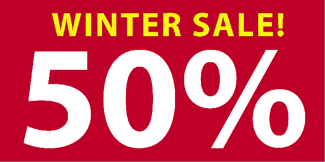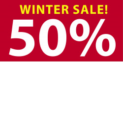 Naklejka samoprzylepna foliowa WINTER SALE! ...% (75x37,5 cm) - druk cyfrowy, solventowy, zadruk jednostronny kolorowy.