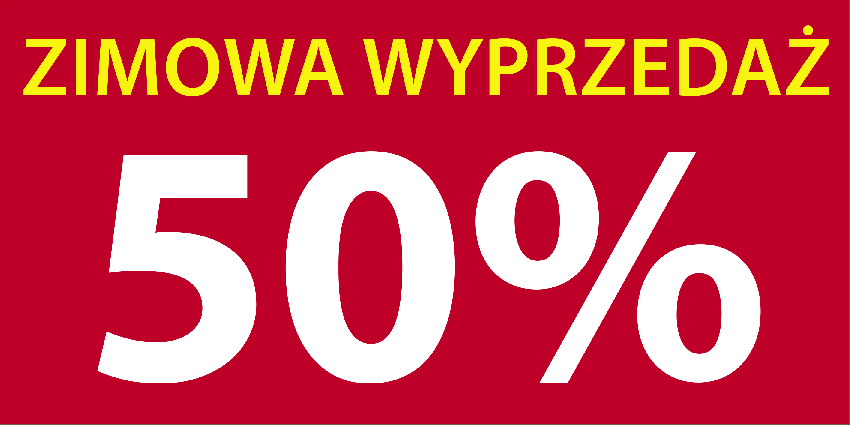 Naklejka samoprzylepna foliowa ZIMOWA WYPRZEDAŻ ...% (100x50 cm) - druk cyfrowy, solventowy, zadruk jednostronny kolorowy.