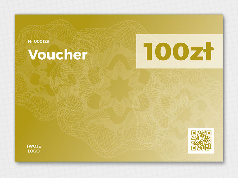 Do produkcji voucherów, jako druków wartościowych, zaleca się użycie co najmniej dwóch technik zabezpieczających przed skopiowaniem. Proponujemy modyfikację Twojego projektu i umieszczenie w nim dwóch lub więcej zabezpieczeń z poniższej listy: